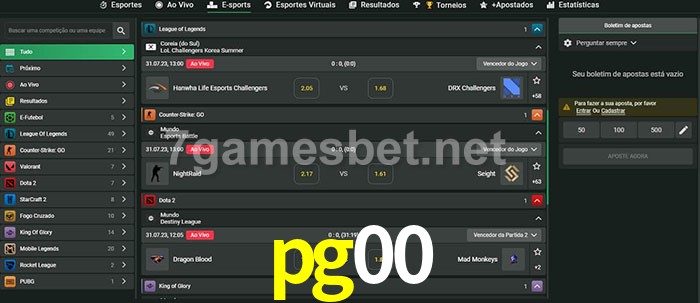 O pg00 oferece uma grande seleção de opções de apostas em e-sports com probabilidades competitivas
